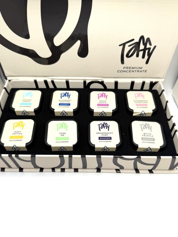 Indulge in Taffy’s latest premium drop: a 1 oz medley of 8 tantalizing flavors, meticulously crafted for THC concentrate enthusiasts. Choose from two elite editions—one featuring velvety badder for smooth, rich hits, and the other sparkling with micro diamonds for crystalline potency. Precision-engineered to deliver the finest concentrates straight to your shelf.